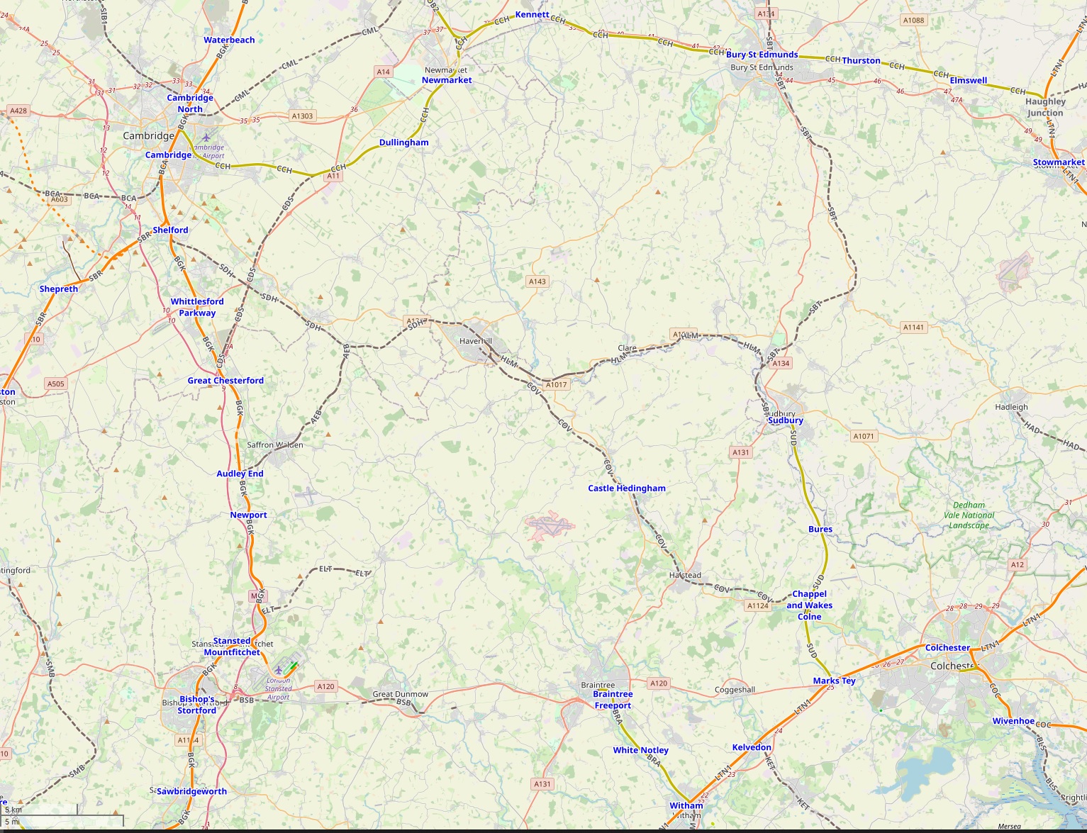 This will provide a rail link between Cambridge and Colchester, connecting the Kings Cross / Liverpool Street – Kings Lynn and the Liverpool Street – Norwich lines.