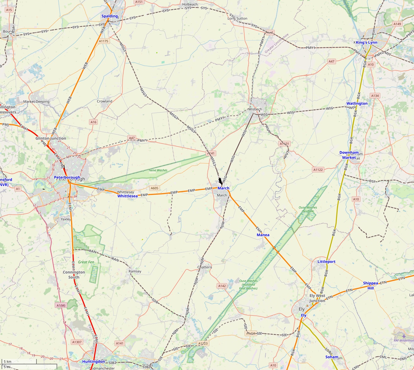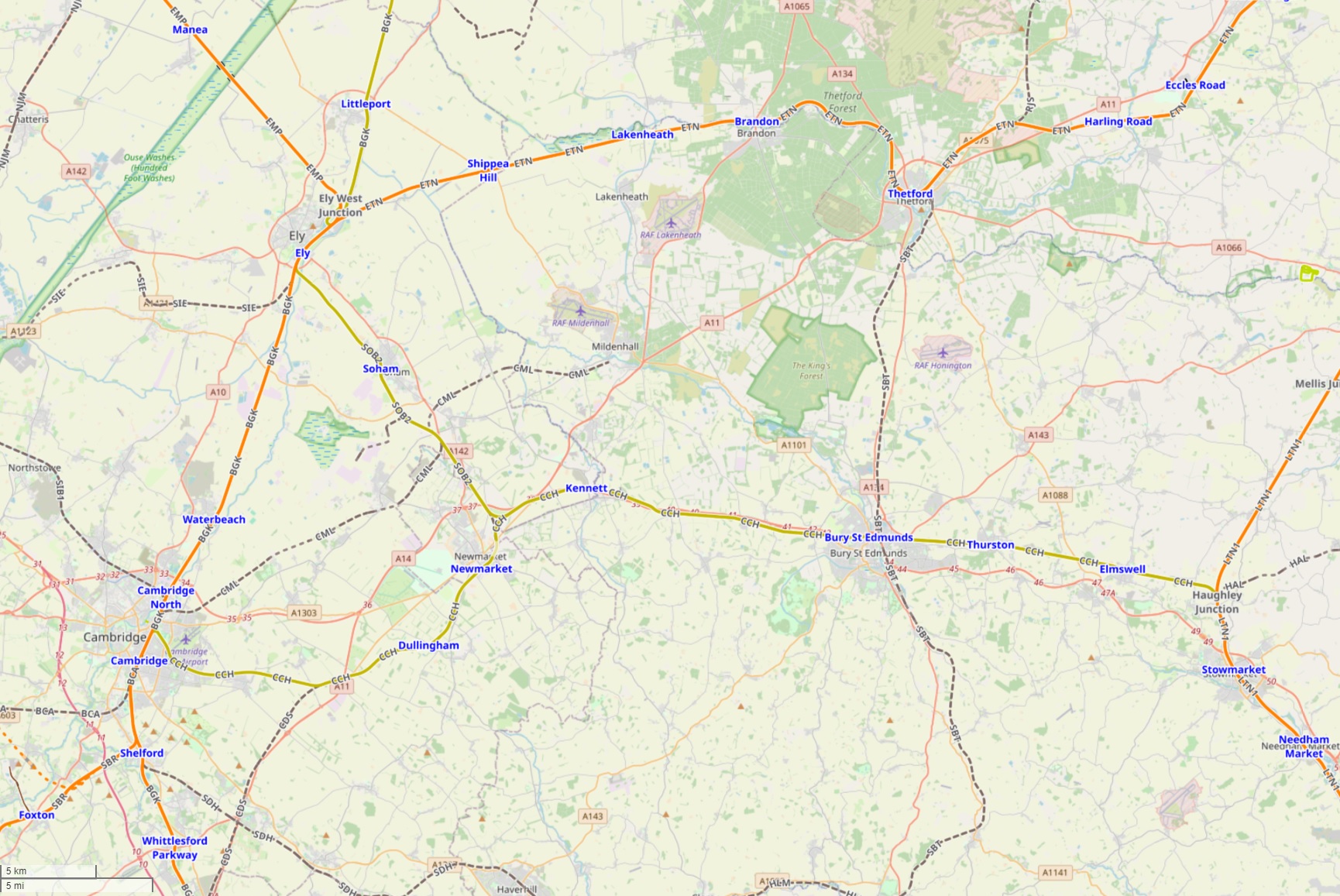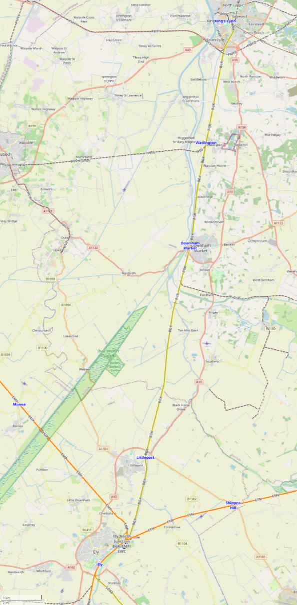 At Ely, a proposed rail-freight bypass off the Soham Line should not be allowed to block these ideas. Rather it should have a double track span over the Kings Lynn Line which takes a double track formation and expansion into consideration at the design stage.