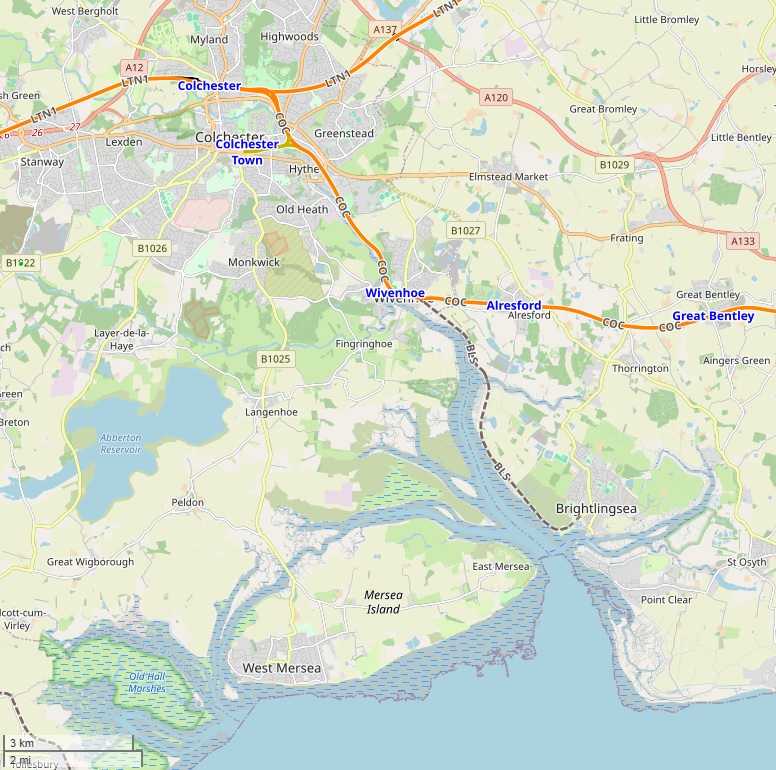 The original line closed in 1964. The landlord of a pub in Brightlingsea would like to see that 5-mile rail link restored – he said “people have been talking about it for years but nobody has ever bothered to do anything about it”. The trackbed remains intact. Could it be mere apathy preventing a restored rail link offering car-free alternatives to many destinations?